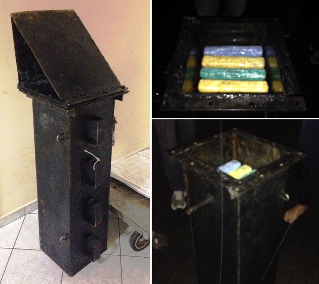 A caixa tem pouco mais de um metro de comprimento e 40 centímetros de largura. Dentro dela, estavam 30 tabletes da droga, envoltos em plástico colorido. Este compartimento estava selado, de modo que não fosse possível entrar água, mesmo com a movimentação brusca em manobras ou com a trepidação da embarcação.