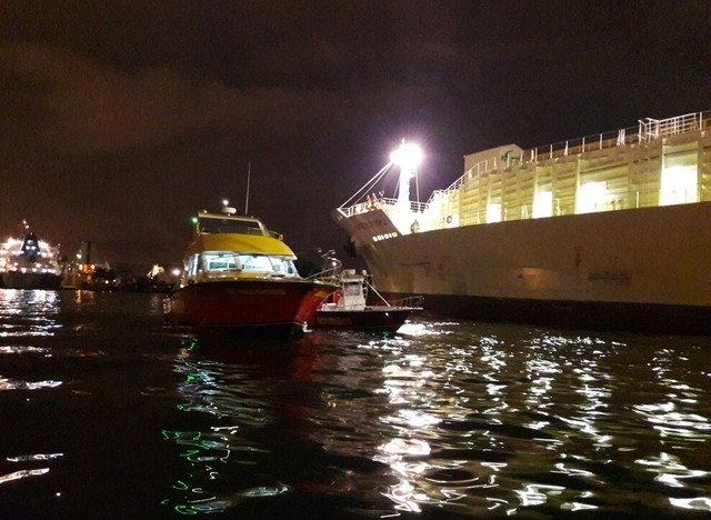 O comandante do navio, cuja bandeira é da Libéria, foi notificado e acionou as autoridades federais. A equipe do Núcleo Especial de Polícia Marítima (Nepom) da Polícia Federal foi à embarcação e solicitou apoio aos mergulhadores do Grupamento Marítimo do Corpo de Bombeiros (GBMar) para localizar e retirar a caixa metálica.
